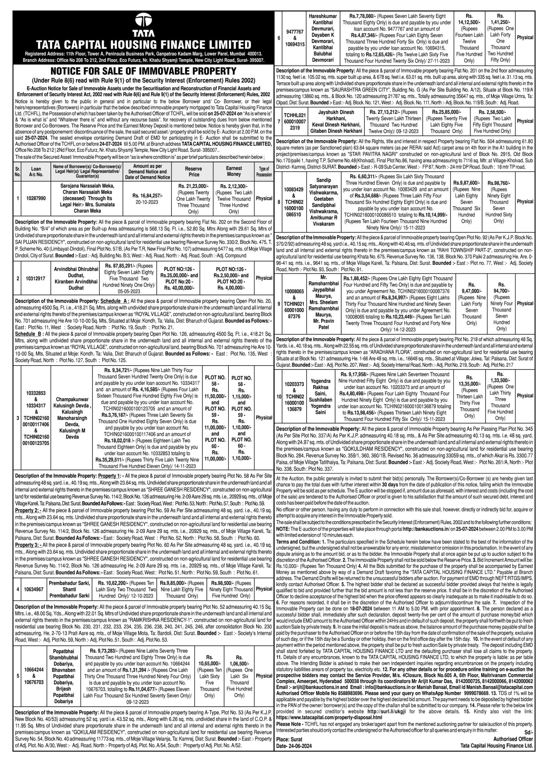 | Contact Details: | Contact The Authorized Officer : Manish Bansal, Email id Manish.Bansal@tatacapital.com, 8588983696 9999078669. |