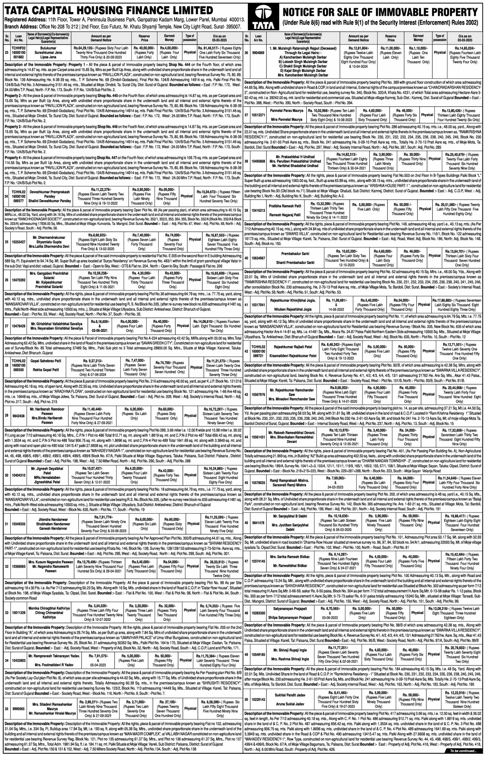 | Contact Details: | Contact The Authorized Officer: Manish Bansal, Email id Manish.Bansal@tatacapital.com 8588983696. WhatsApp Number 9999078669 |