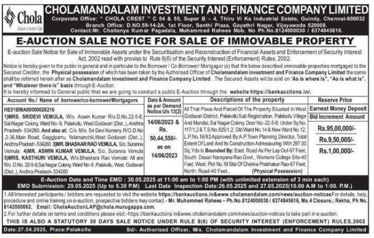| Start Date and Time of Auction: | 30-05-2025 11:00 am |