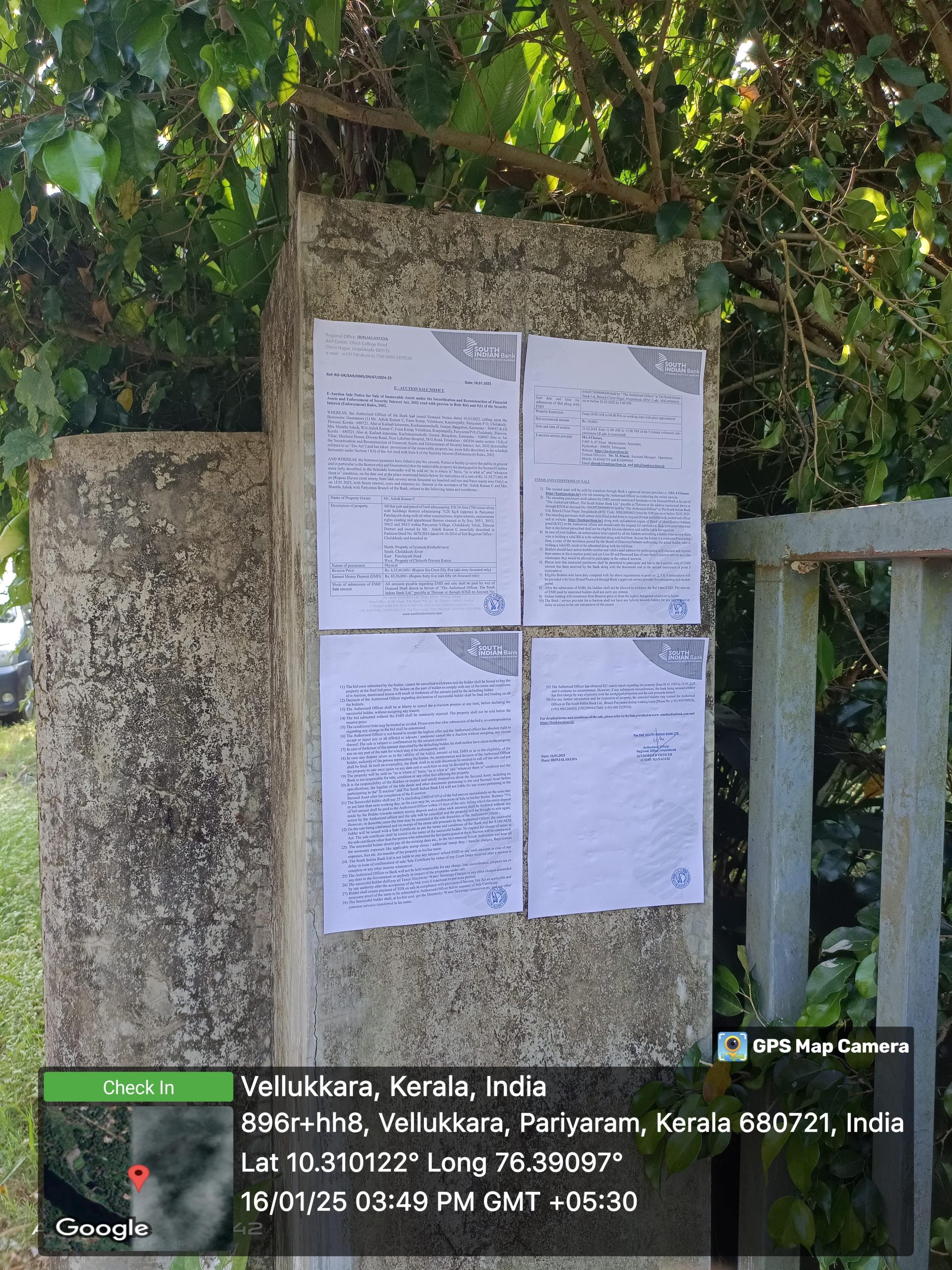 | Schedule of Property: | All that part and parcel of land admeasuring 318.24 Ares (786 cents) along with buildings thereon admeasuring 7128 Sq.ft (approx) in Pariyaram Panchayath along with all other constructions, improvements, easementary rights existing and appurtenant thereon situated in Sy Nos. 393/1, 393/2, 394/2 and 394/3 within Pariyaram Village, Chalakkudy Taluk, Thrissur District and owned by Mr. Ashok Kumar C morefully described in Partition Deed No. 4670/2014 dated 04-10-2014 of Sub Registrar Office Chalakkudy and bounded on North: Property of Iyyanam Kochudevassy South: Chalakkudy River East: Panchayath Road West: Property of Chittyeth Praveen Kumar |