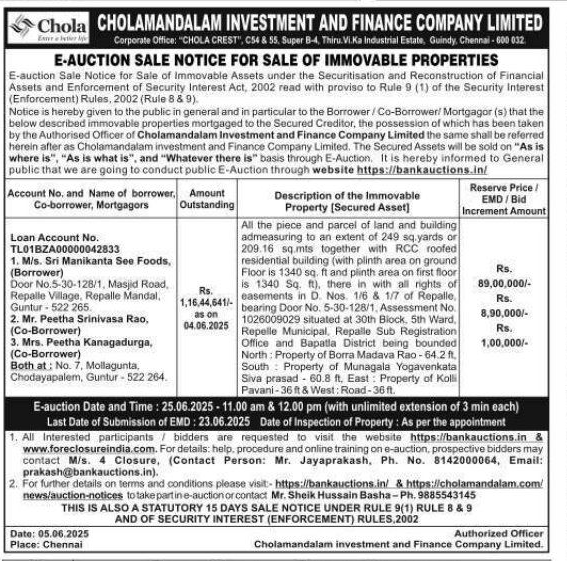| Start Date and Time of Auction: | 25-06-2025 11:00 am |
