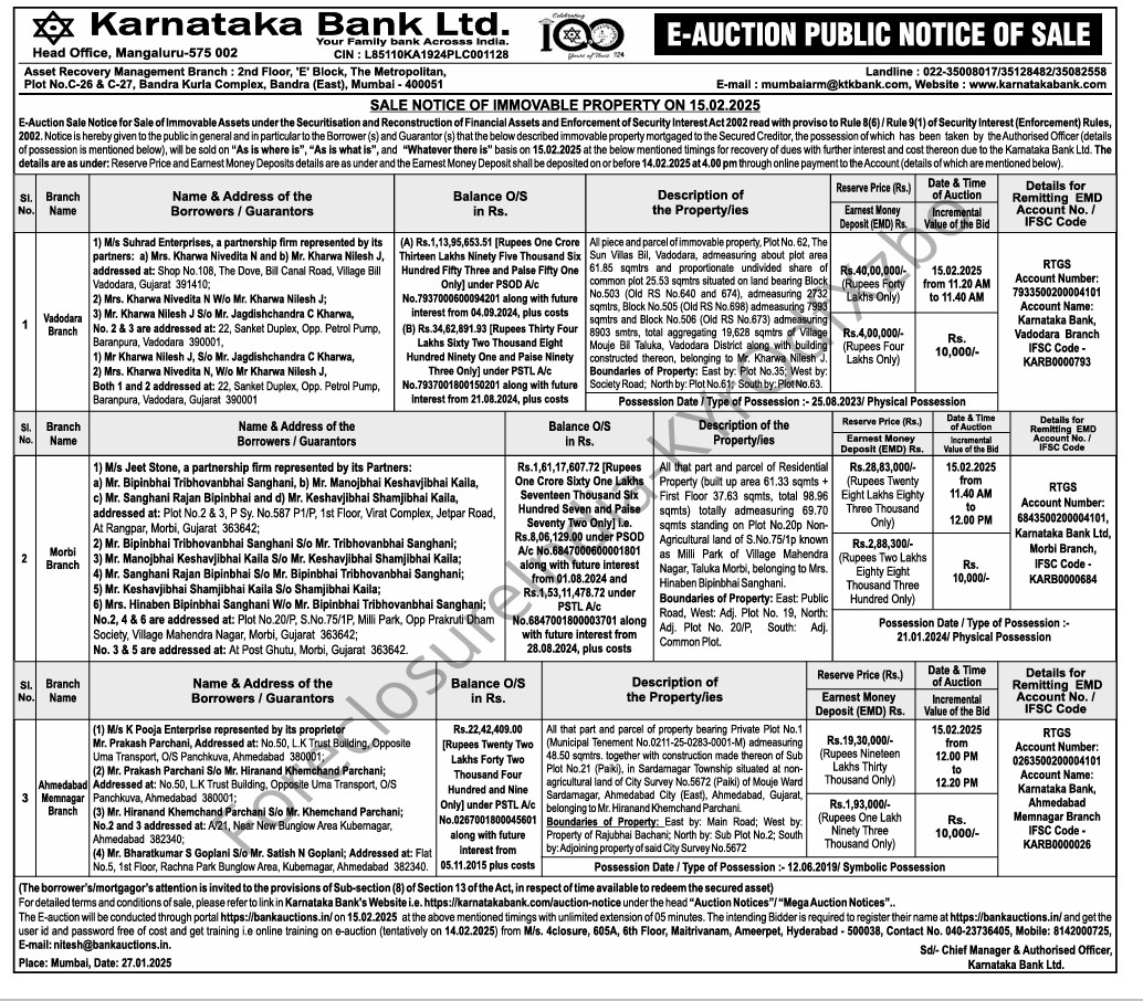 | Start Date and Time of Auction: | 15-02-2025 12:00 pm |