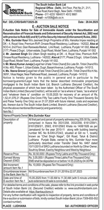 | Start Date and Time of Auction: | 15-05-2025 11:00 am |