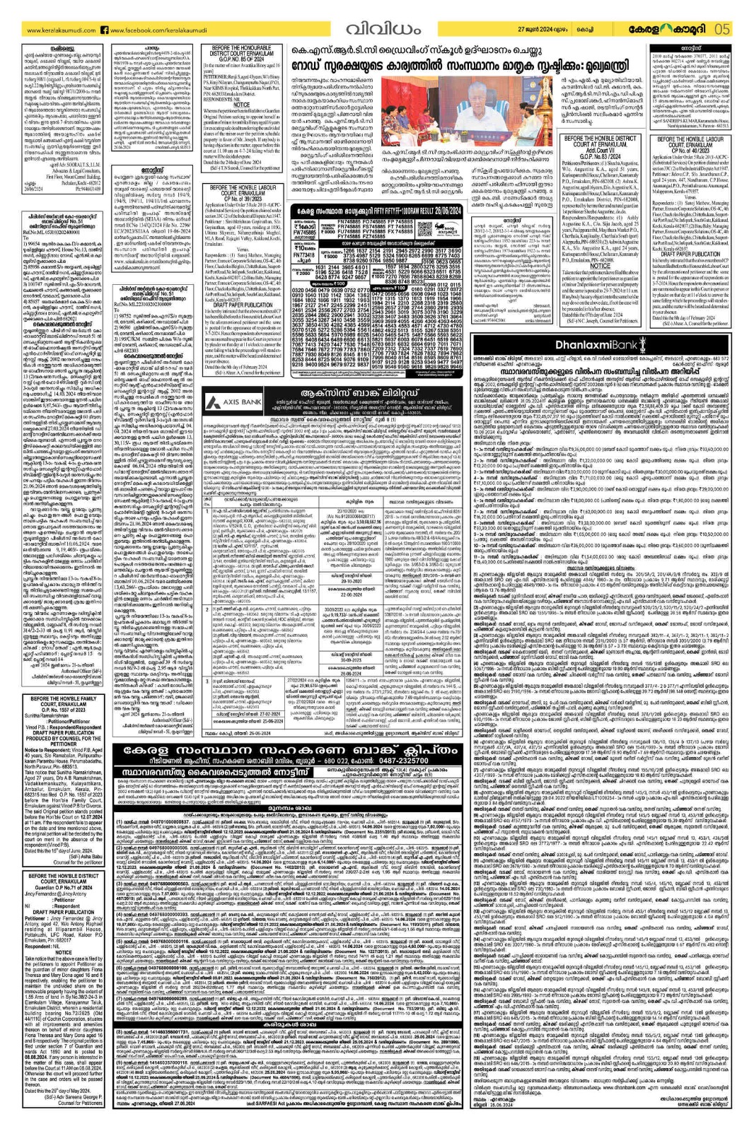 | Contact Details: | Contact the Authorised Officer, Mr. Saji P (Mob:9539008250), or Mr. Siby Joseph Kappen, Sr Manager, Recovery (Mob:8075458523) or Mr. Rinto Thomas, Branch Manager (9539004600) |