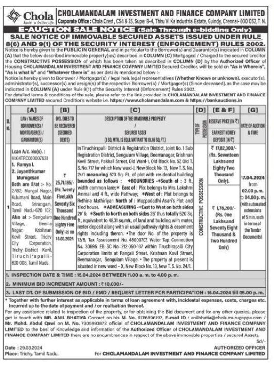 | Start Date and Time of Auction: | 17-04-2024 2:00 pm |