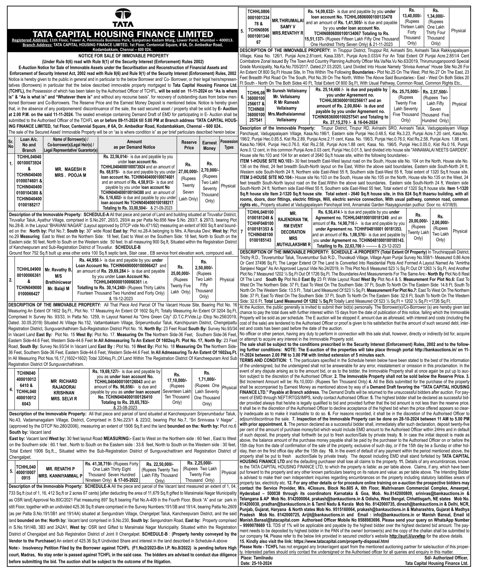 | Contact Details: | Contact The Authorized Officer :Mr.Manish Bansal 8588983696/9999078669 Email-Manish.Bansal@tatacapital.com |
