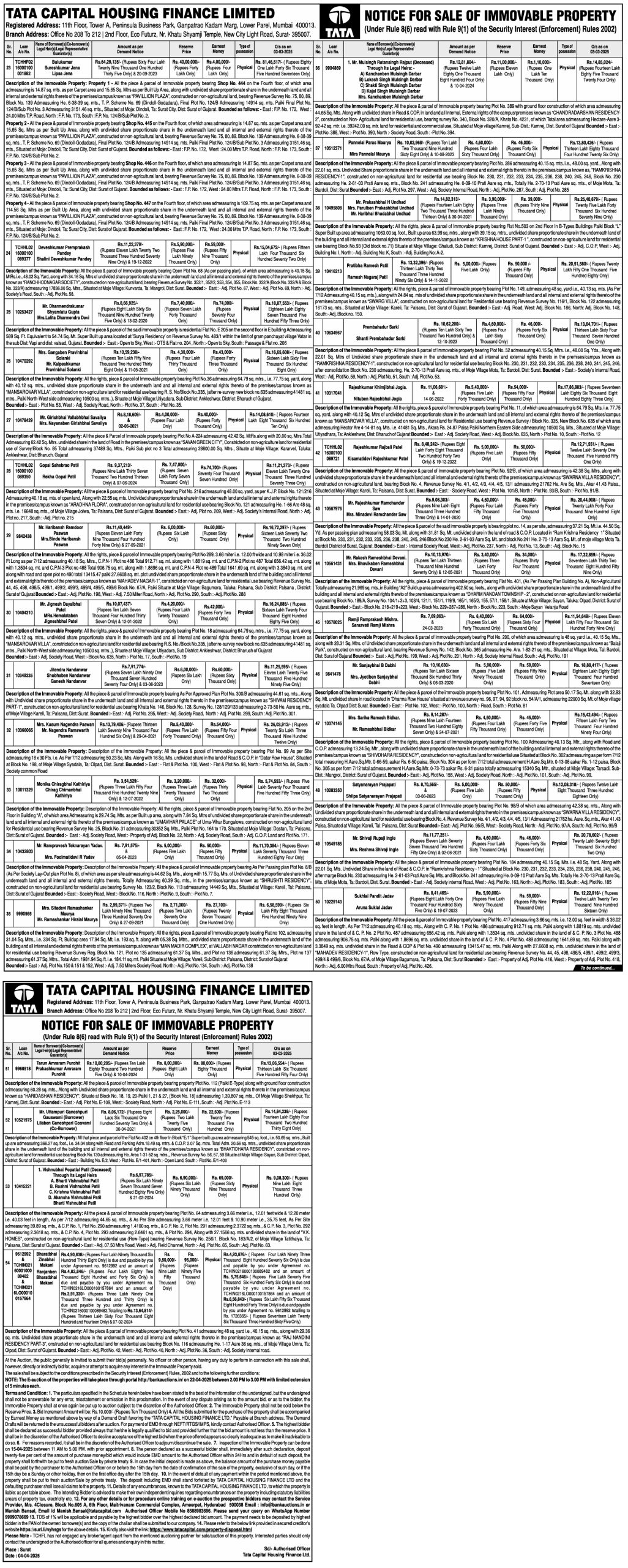 | Contact Details: | Contact The Authorized Officer: Manish Bansal, Email id Manish.Bansal@tatacapital.com 8588983696. WhatsApp Number 9999078669 |
