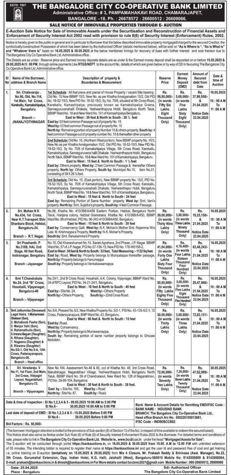 | End Date and Time of Auction: | 16-05-2025 11:00 am |
