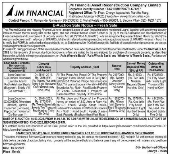 | End Date and Time of Auction: | 14-03-2025 1:00 pm |