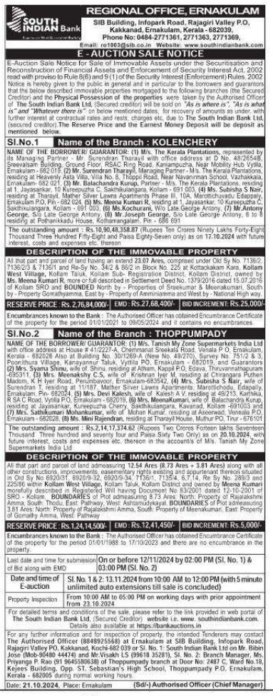 | Contact Details: | Contact the Authorized Officer : Mr.Bibin Jose 9048044474, Mr. Visakh LS 9961835281 |