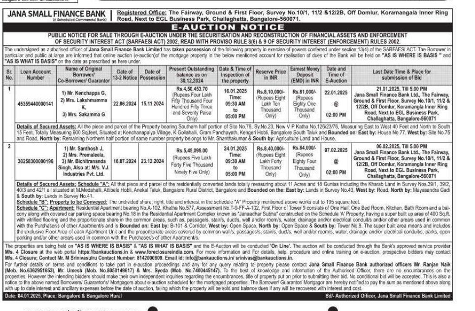 | Contact Details: | Contact The Authorized Officer : Mr. Ranjan Naik 6362951653, Mr. Umesh 8050149617,Mrs. Syeda 7400445147 |