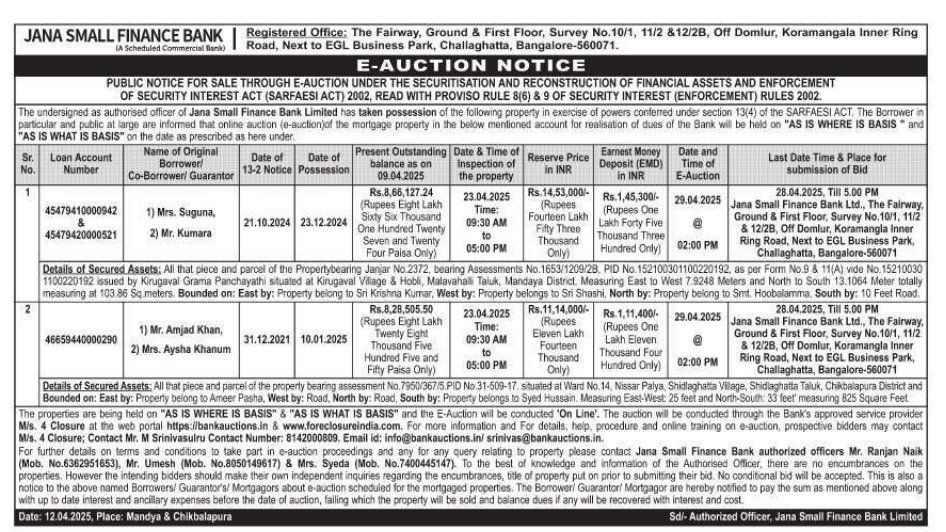 | Contact Details: | Contact The Authorized Officer: Mr. Ranjan Naik - 6362951653,Mr. Umesh - 8050149617,Mrs. Syeda - 7400445147 |