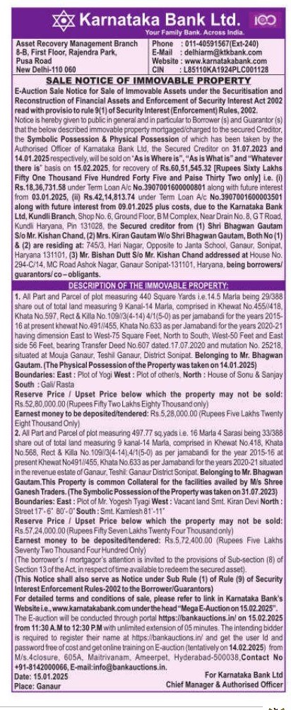 | Start Date and Time of Auction: | 15-02-2025 11:30 am |