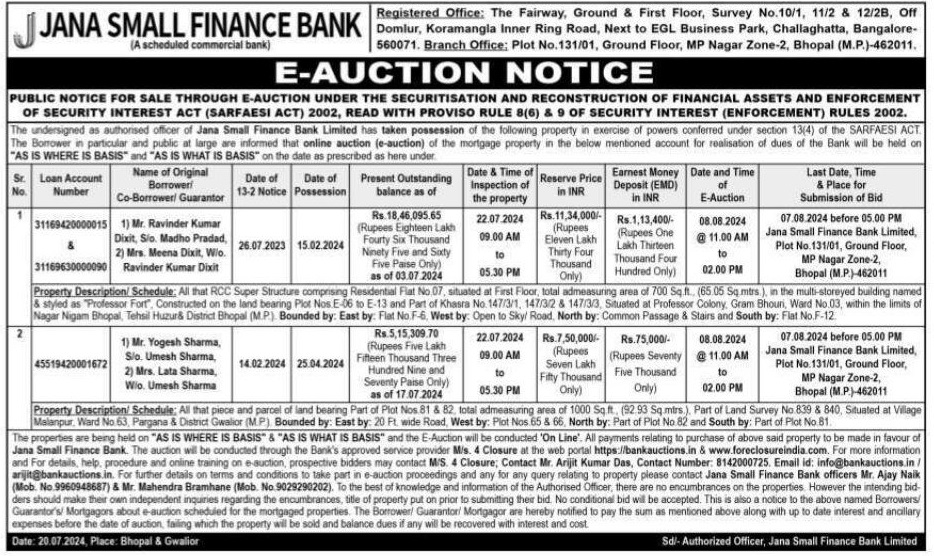 | Start Date and Time of Auction: | 08-08-2024 11:00 am |