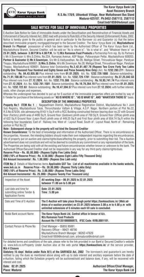 | Start Date and Time of Auction: | 23-01-2025 3:00 pm |