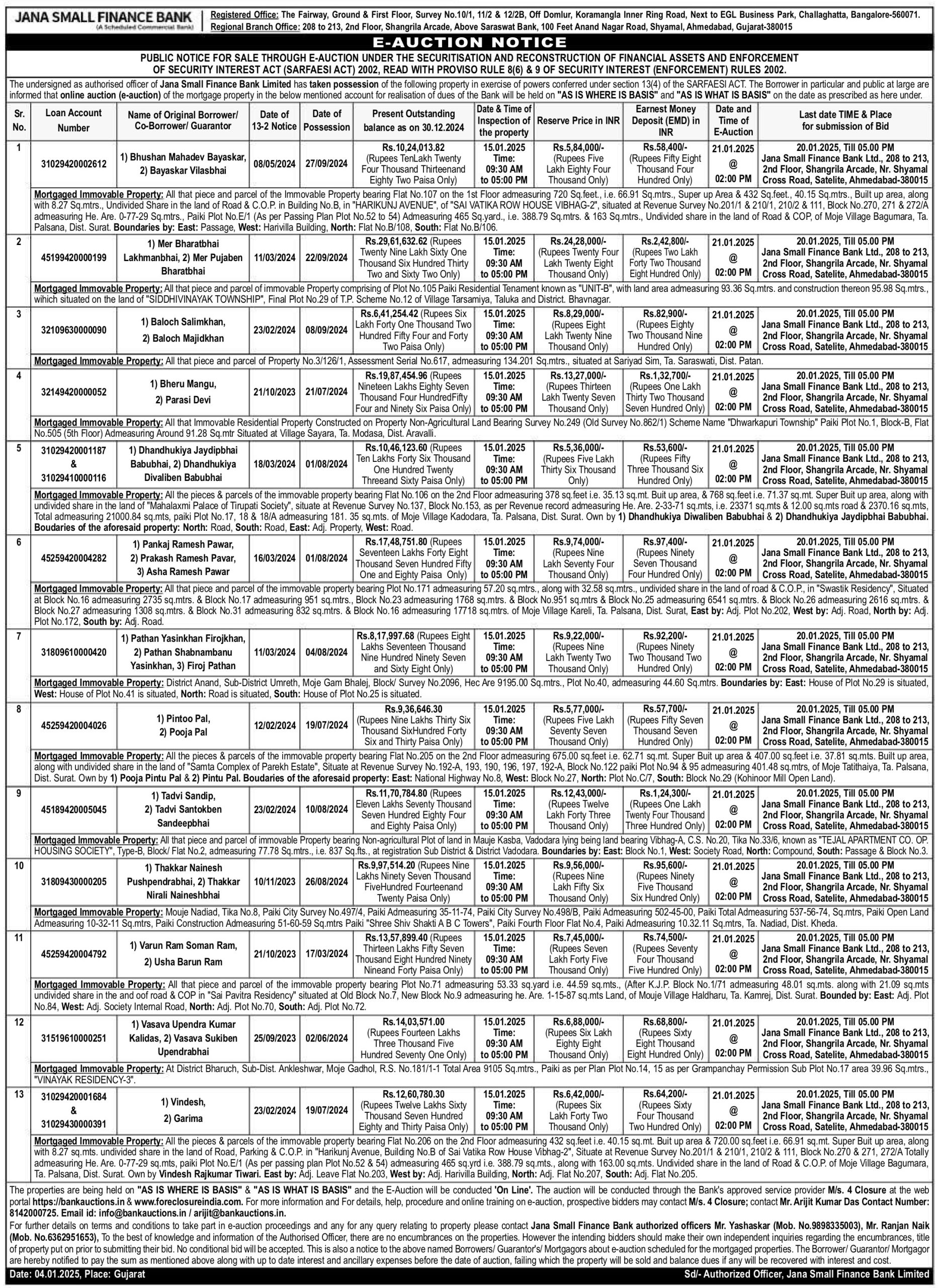 | Start Date and Time of Auction: | 21-01-2025 2:00 pm |