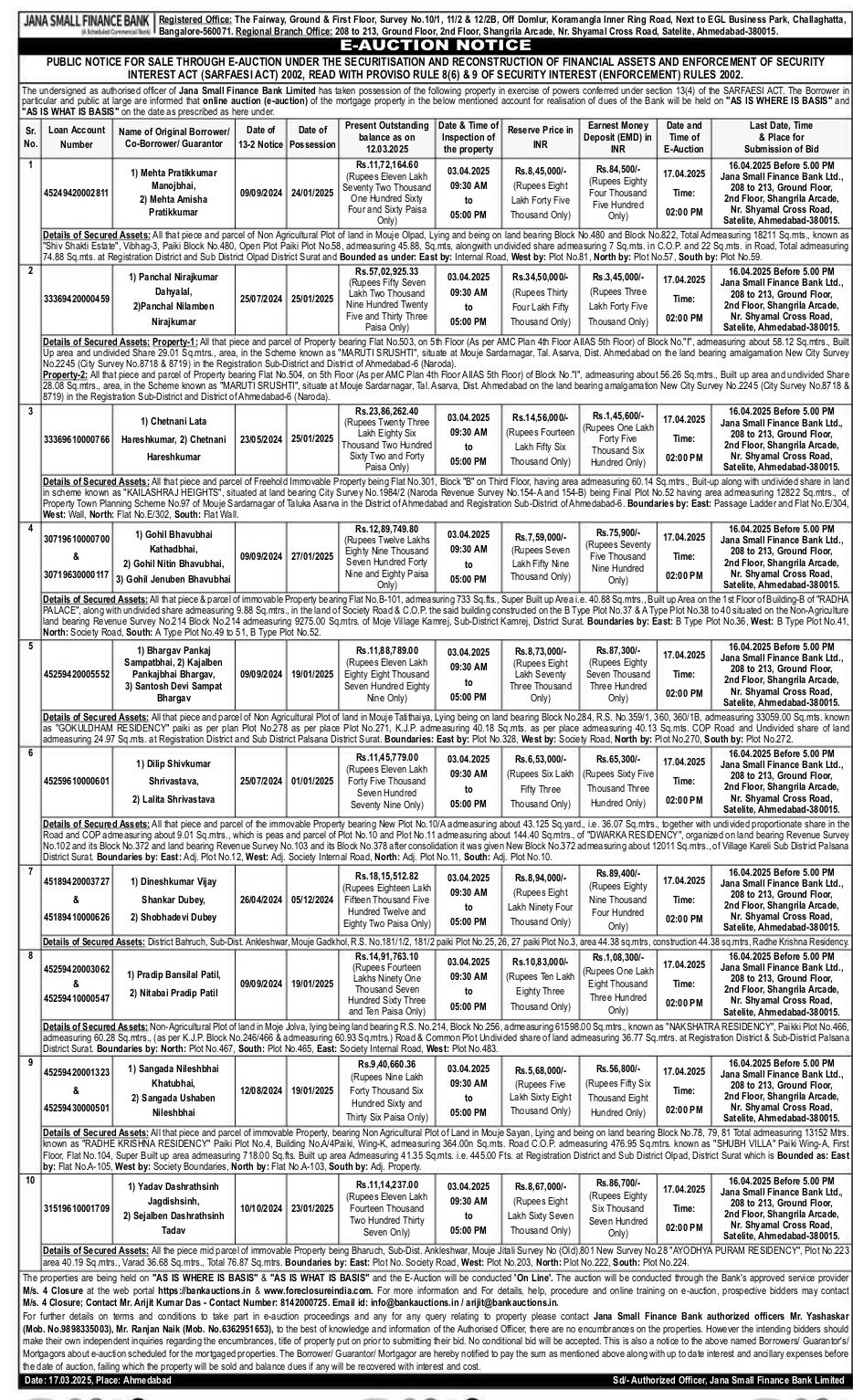 | Start Date and Time of Auction: | 17-04-2025 2:00 pm |