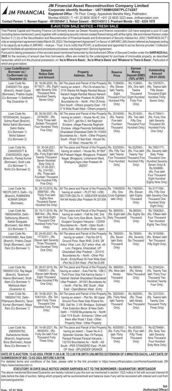 | Start Date and Time of Auction: | 13-02-2024 11:00 am |