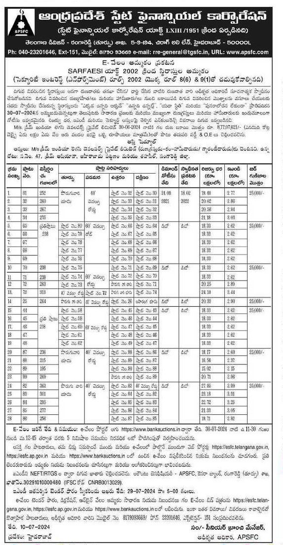 | Contact Details: | Contact The Authorized Officer: 8179093669 / Ph. 23201646, Ext-151. |