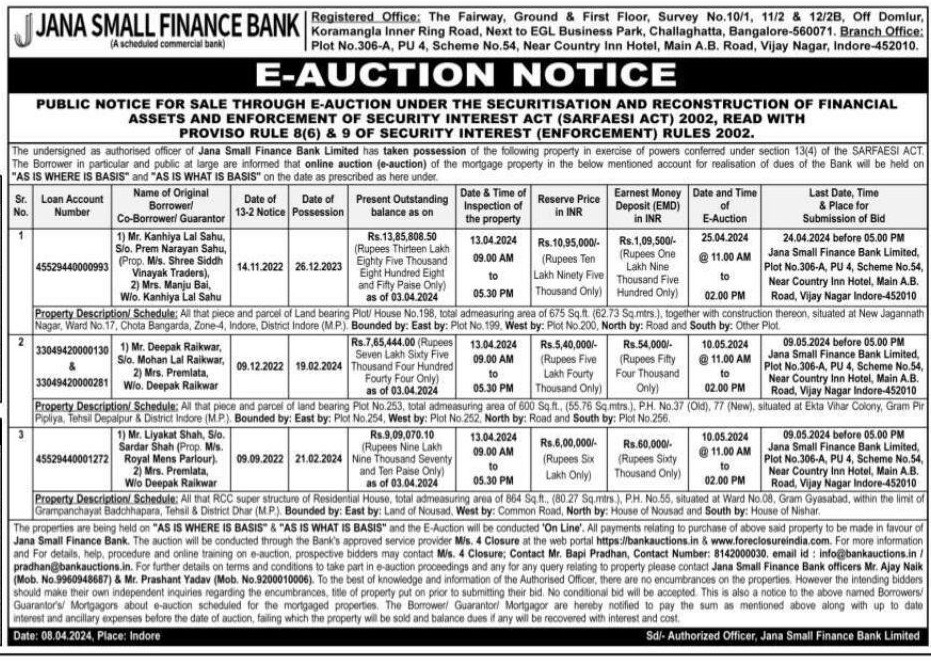 | Contact Details: | Contact The Authorized Officer : Mr. Ajay Naik (Mob. .9960948687) & Mr. Prashant Yadav (Mob. No 9200010006) |