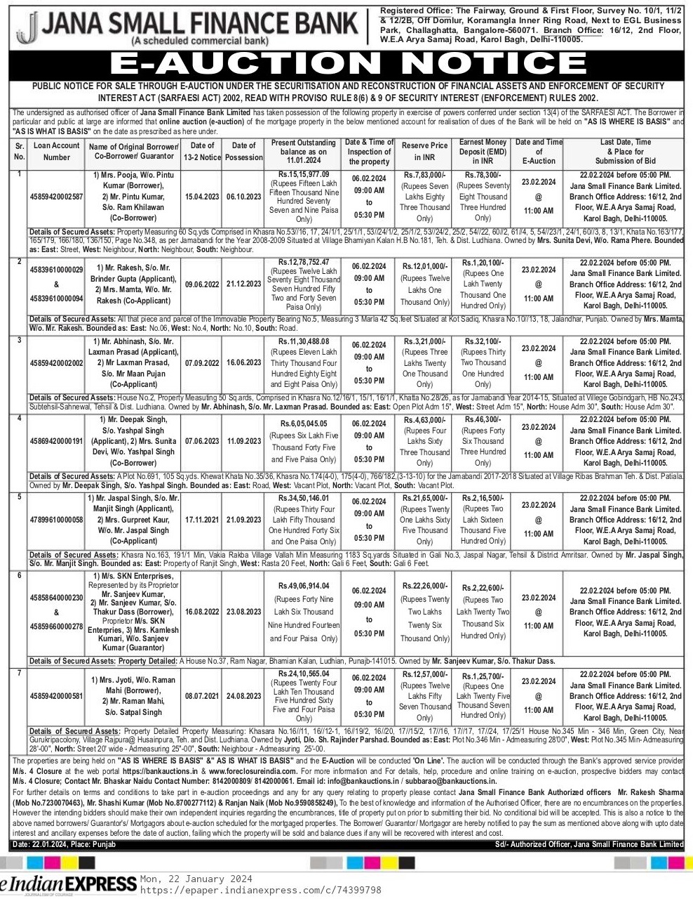 | Start Date and Time of Auction: | 23-02-2024 11:00 am |