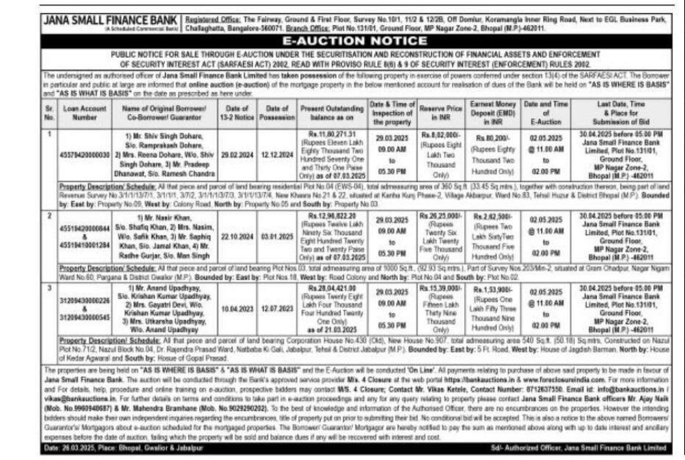 | Start Date and Time of Auction: | 02-05-2025 11:00 am |