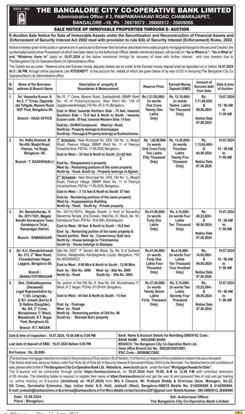 | Contact Details: | Contact The Authorized Officer: . Ph. : 26678572 : 26600512 : 26609066. 080-26600512 26609066 |