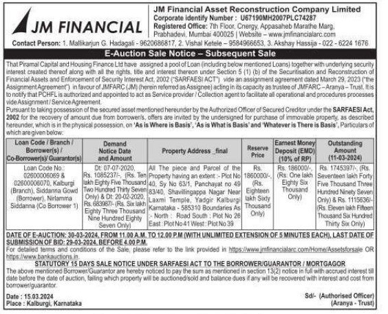 | Start Date and Time of Auction: | 30-03-2024 11:00 am |
