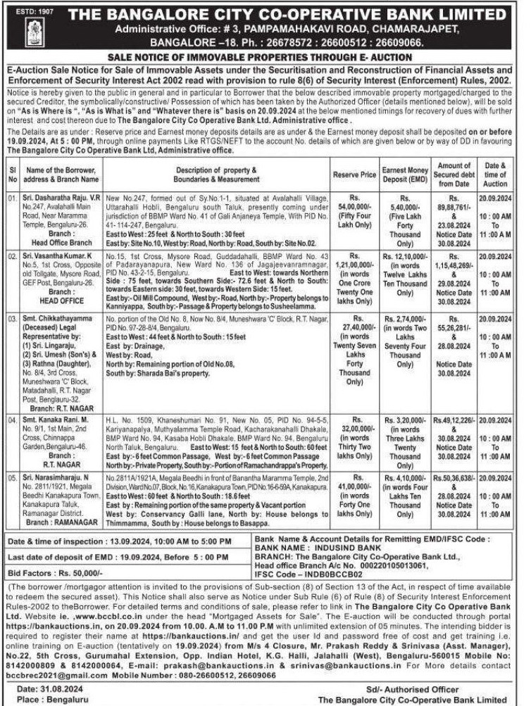 | End Date and Time of Auction: | 20-09-2024 11:00 am |