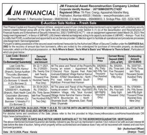 | Start Date and Time of Auction: | 04-02-2025 11:00 am |