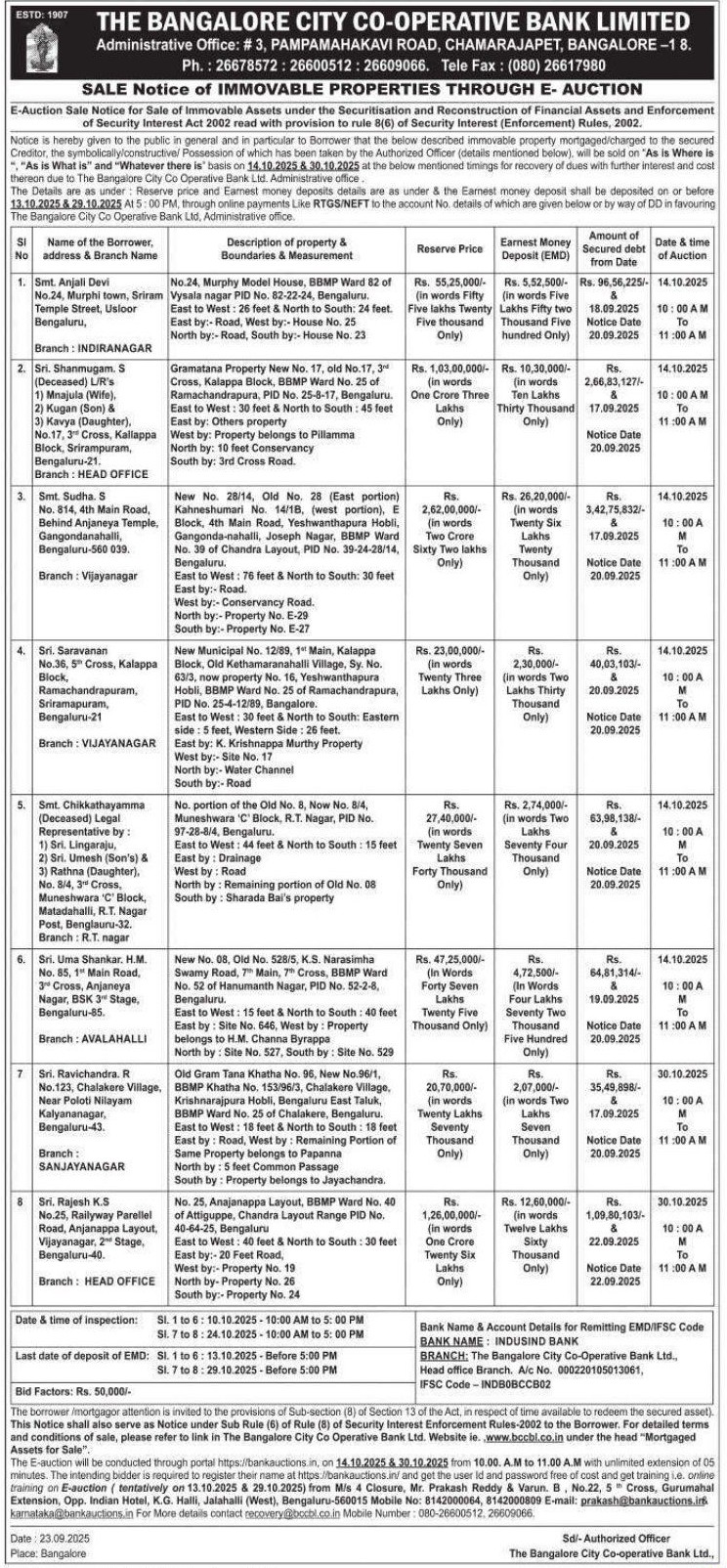 | End Date and Time of Auction: | 14-10-2025 11:00 am |