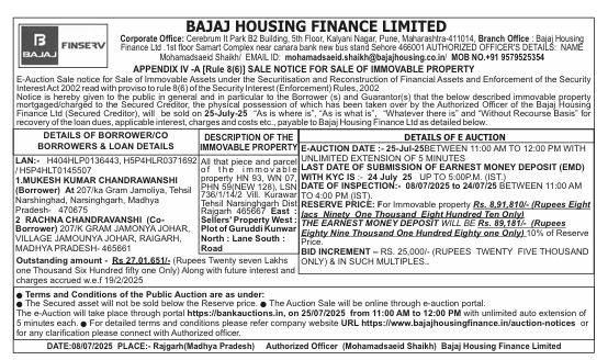 | End Date and Time of Auction: | 25-07-2025 12:00 pm |