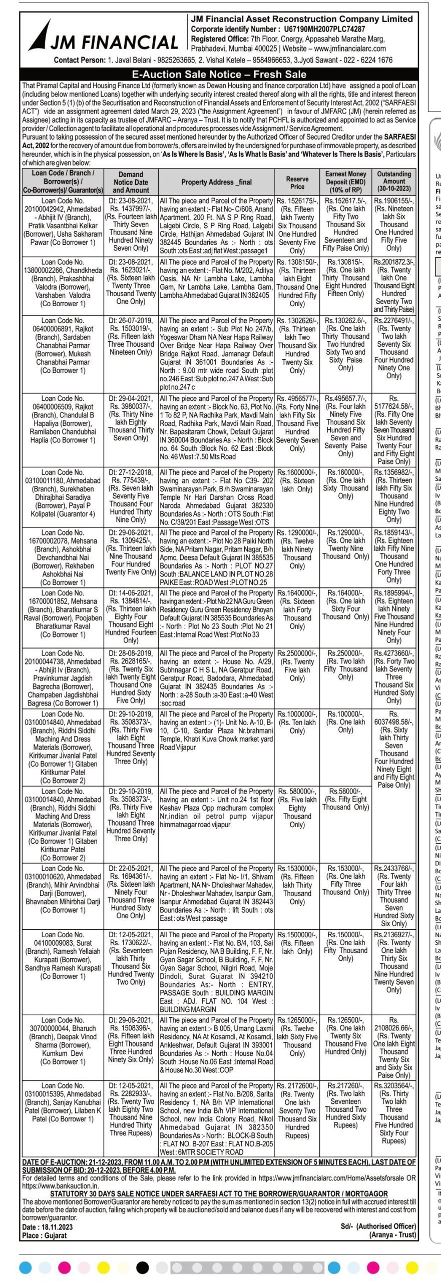 | Start Date and Time of Auction: | 21-12-2023 11:00 am |