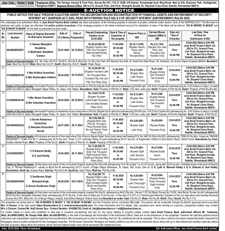 | End Date and Time of Auction: | 25-04-2025 3:00 pm |