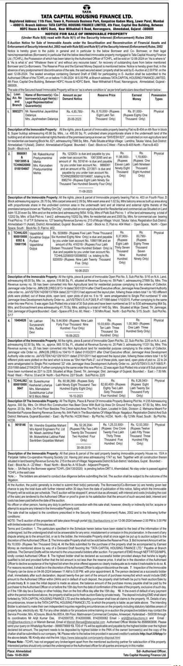 | Contact Details: | Contact Authorized Officer : Mr. Manish Bansal Mob.No.:8588983696 , 9999078669 |