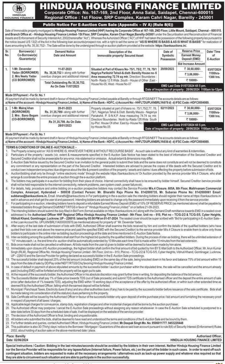 | Contact Details: | Contact The Authorized Officer: Mr Deepak Singh Mo. No. 9506011777, 9453220448 |