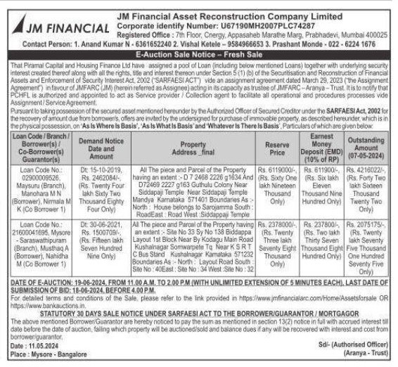 | Start Date and Time of Auction: | 19-06-2024 11:00 am |