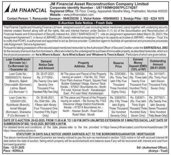 | End Date and Time of Auction: | 20-02-2025 1:00 pm |