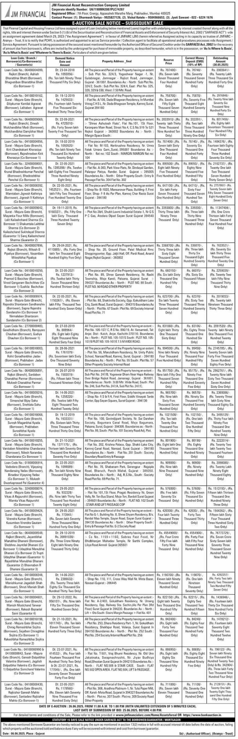 | Schedule of Property: | All The piece and Parcel of the Property having an extent Plot No. 68, Shaktivilla Society, Opp. Gokuldham Lake City, Sanki Road, Surat Gujarat:-394315 Boundaries As -North: Plot No. 67 South: Plot No. 69 Society Internal Road Plot No. 71 |