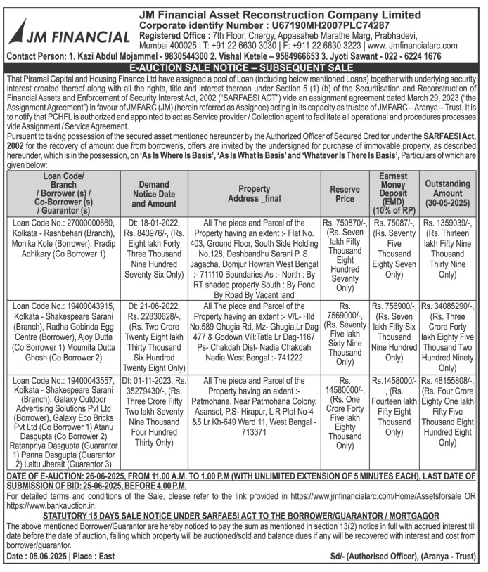 | End Date and Time of Auction: | 26-06-2025 1:00 pm |