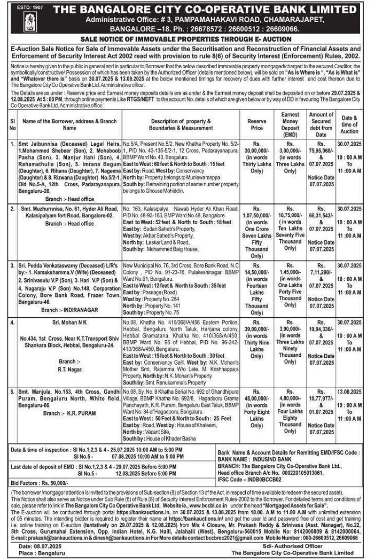 | End Date and Time of Auction: | 30-07-2025 11:00 am |
