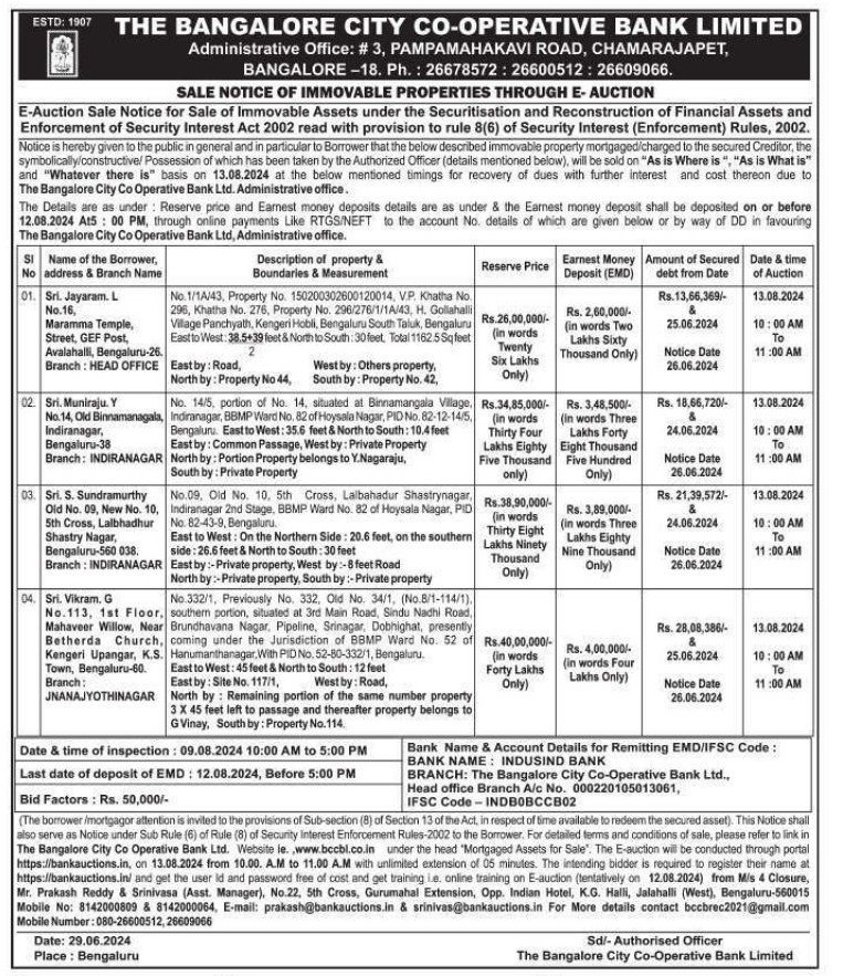 | Start Date and Time of Auction: | 13-08-2024 10:00 am |