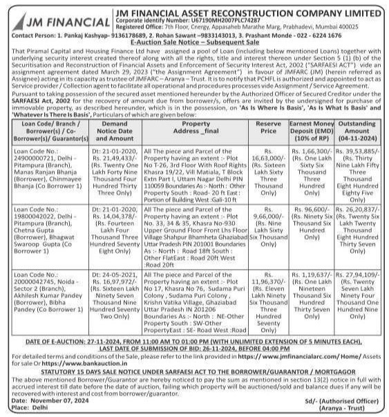 | Start Date and Time of Auction: | 27-11-2024 11:00 am |