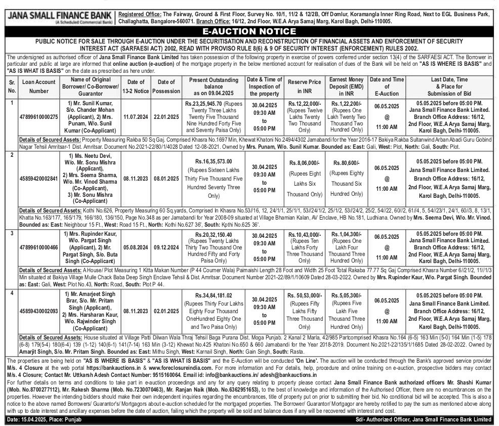 | Start Date and Time of Auction: | 06-05-2025 11:00 am |