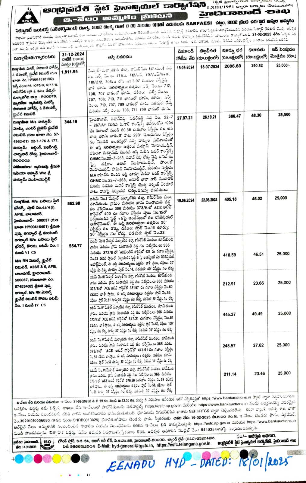 | End Date and Time of Auction: | 21-02-2025 12:30 pm |