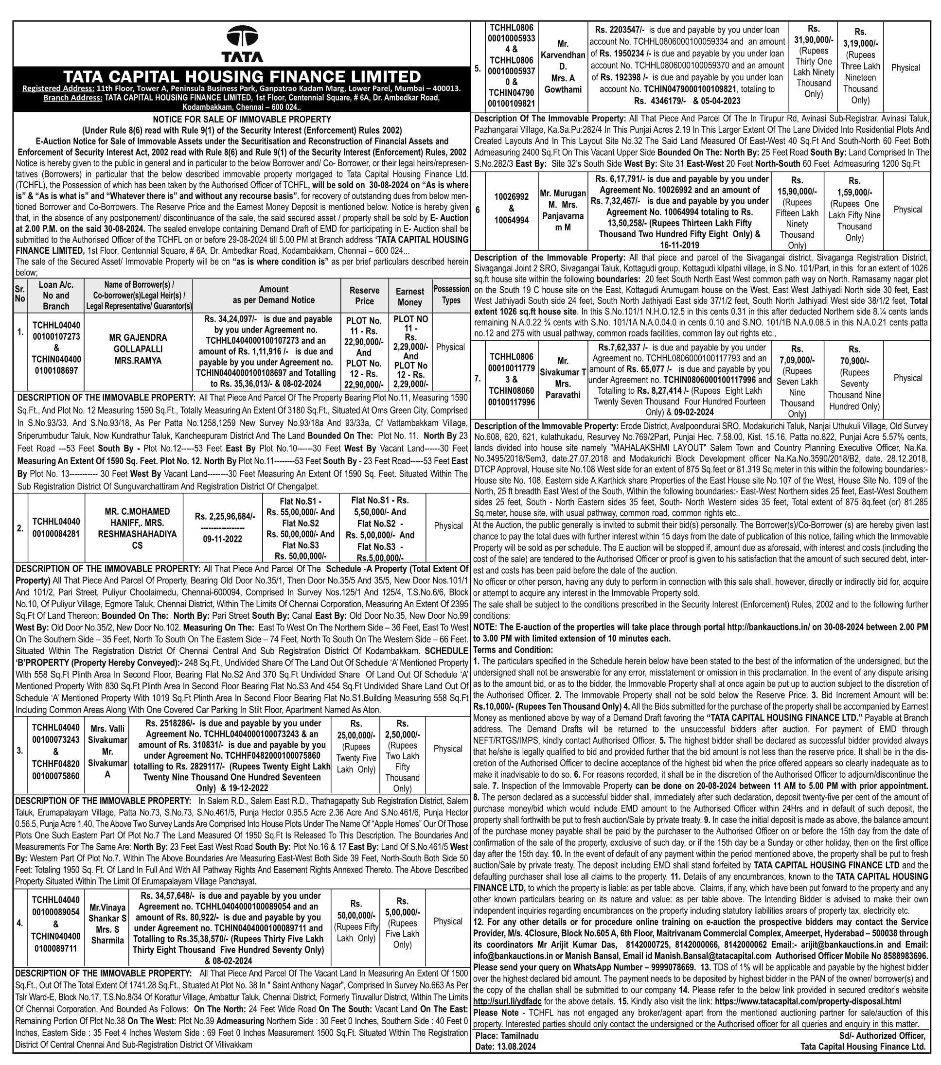 | End Date and Time of Auction: | 30-08-2024 3:00 pm |