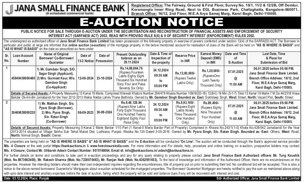 | Contact Details: | Contact the Authorized Officer : Mr. Tung Kaushik, (Mob. No.9873662400), Mr. Rakesh Sharma (Mob. No.7230070463), Mr. Ranjan Naik (Mob. No.6362951653). |