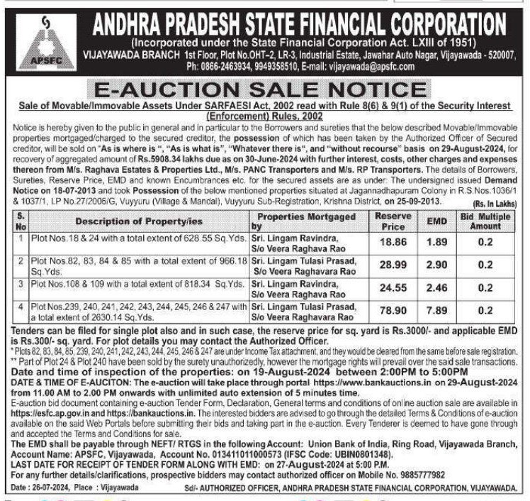 | End Date and Time of Auction: | 29-08-2024 2:00 pm |