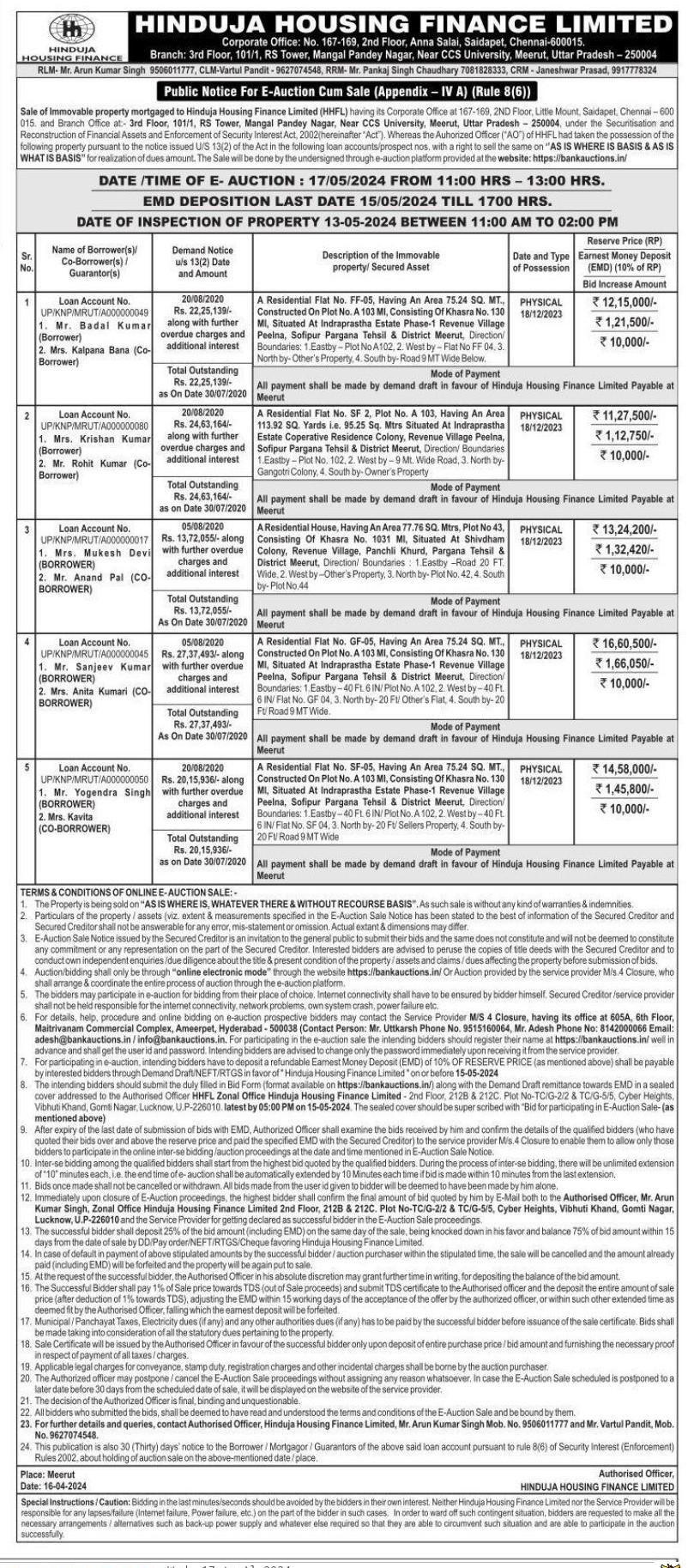| Contact Details: | Contact the Authorized Officer : RLM- Mr. Arun Kumar Singh 9506011777, CLM-Vartul Pandit - 9627074548, RRM- Mr. Pankaj Singh Chaudhary 7081828333, CRM - Janeshwar Prasad, 9917778324. |