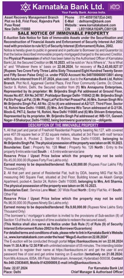 | Start Date and Time of Auction: | 22-08-2024 11:30 am |